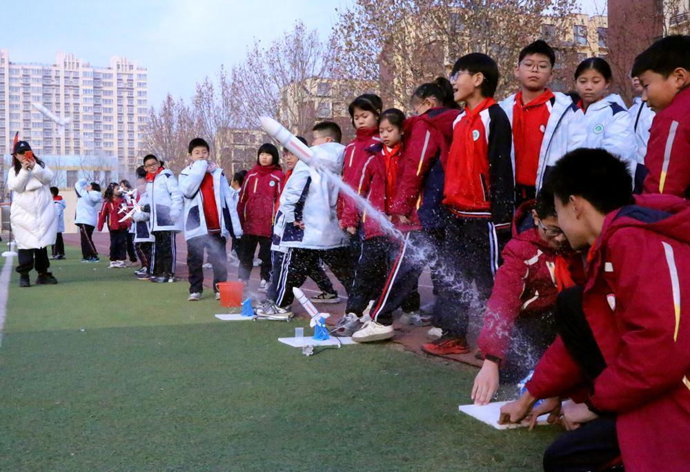 开幕式结束后,科技嘉年华活动随即开始。火箭表演和无人机表演点燃了现场的气氛,火箭冲天而起,无人机带着“科技点亮梦想,未来强国有我”的主题横幅在空中表演。